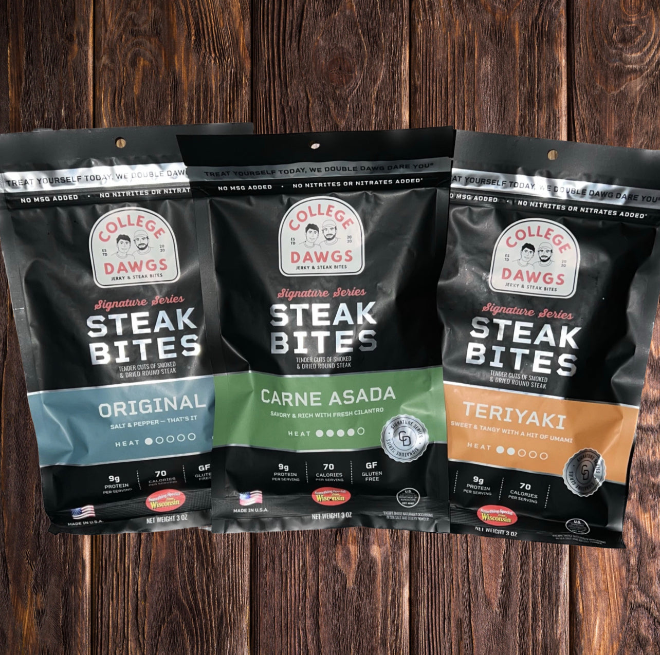 You may ask, "What are Steak Bites"? It's a thicker, juicier cut of beef jerky.